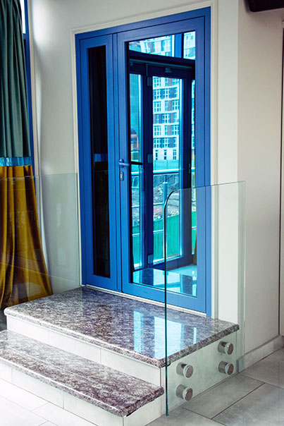 Скляні двері вставлені в алюмінієвий каркас. З метою безпеки використовується загартоване скло. Переваги даної конструкції в хорошій світлопроникності.