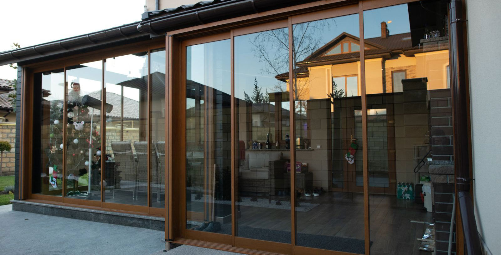 Тепле скління – це теплий профіль, енергозберігаюче скло або триплекс, дво-три камерні склопакети. Засклення повністю відповідатиме вимогам житлового приміщення з енергоощадження та теплопровідності, а значить, що навіть у зимові морози на веранді буде тепло та затишно. Це дорожча конструкція, але вона забезпечує належні умови для створення зимового саду, кабінету, вітальні та інших цілей.