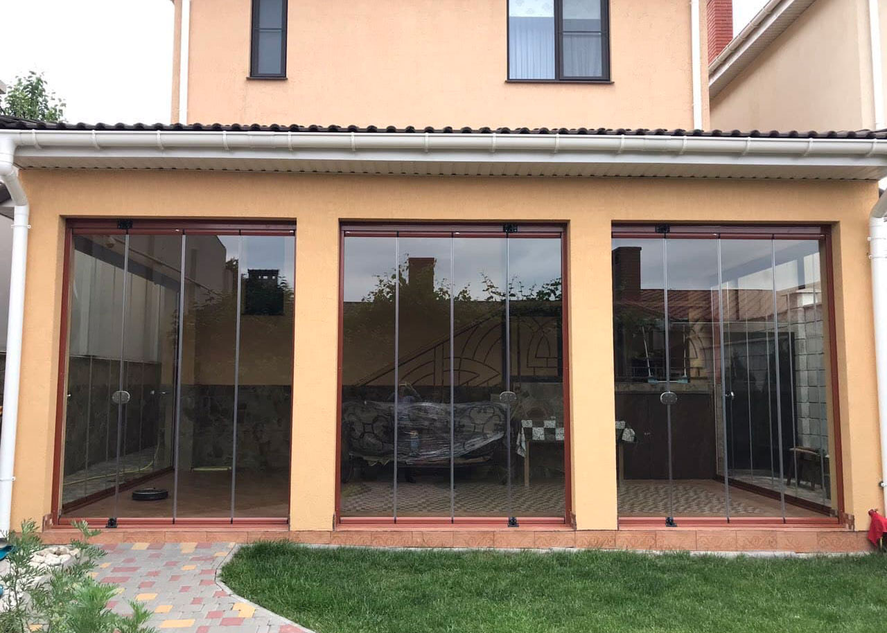 Розсувне скління допоможе заощадити вільний простір на веранді у відкритому положенні вікон та дверей. Стильне, функціональне та зручне рішення.