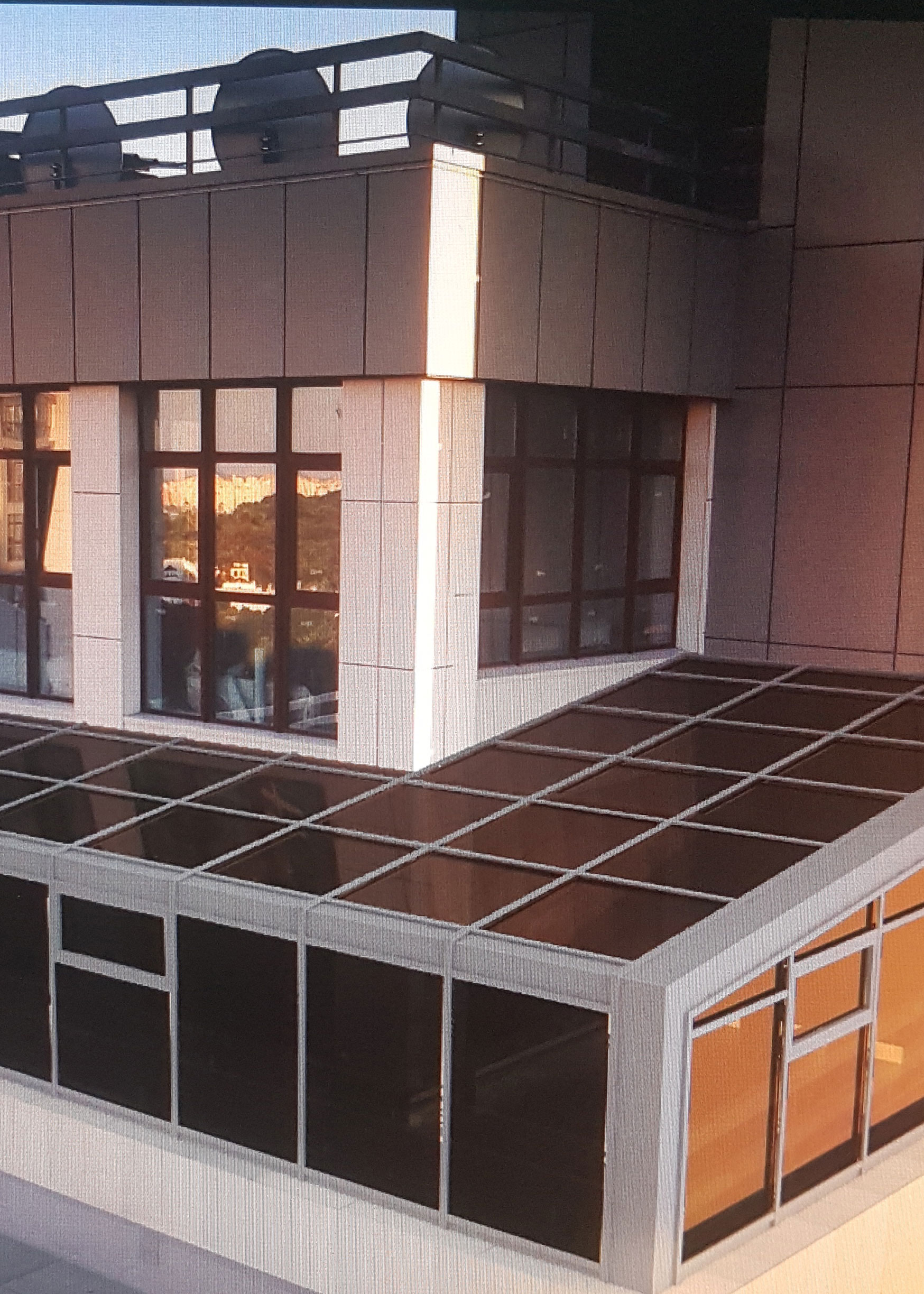 - Дах, який складається зі скла та алюмінієвих профілів;